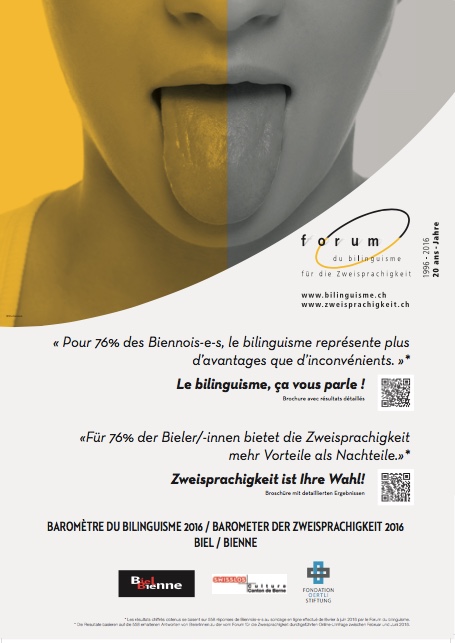 Die Ergebnisse der breit angelegten, von Juni bis Februar 2016 durchgeführten Umfrage unter der Bieler Bevölkerung zeigen, dass die Zweisprachigkeit in der Seelandstadt acht Jahre nach dem letzten «Barometer» weiterhin positiv bewertet wird. Obwohl die Zweisprachigkeit ein fester Bestandteil der Identität der Bieler-innen ist und in den Augen der Bevölkerung mehr Vor- als Nachteile mit sich bringt, sind die Französischsprachigen in diesem Jahr unzufriedener als 2008.